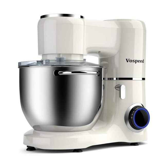 The Vospeed Stand Mixer is a versatile and powerful addition to any kitchen, offering exceptional performance, a generous 8L bowl, and a range of useful attachments. With its 1500W motor and elegant white design, this mixer not only enhances your cooking and baking experiences but also adds a touch of style to your kitchen. Whether you’re preparing bread, cakes, pasta, or other dishes, the Vospeed Stand Mixer provides the power and functionality needed to achieve outstanding results.